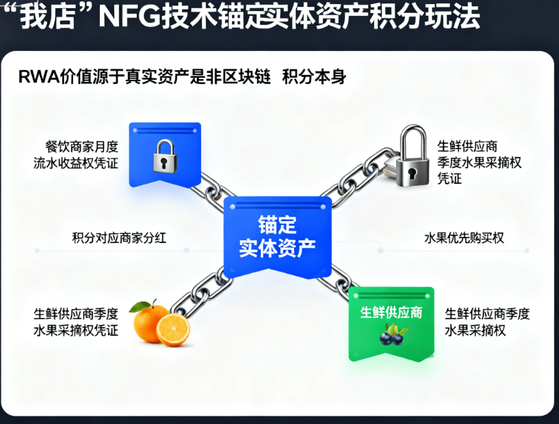 比如合作的餐饮商家,能把 “月度流水收益权” 做成凭证;生鲜供应商能把 “季度水果采摘权” 做成凭证。用户手里的积分,就不再只值 “几块钱抵扣”,还可能对应 “某家店的分红”“某批水果的优先购买权”。