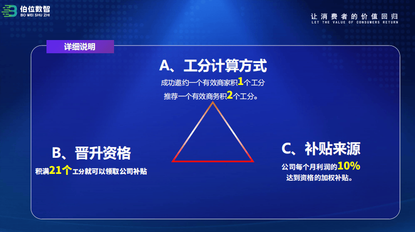 普通用户能免费申请当 “商务”,帮平台推广商家、分享用户、招代理,就能赚佣金 —— 比如商家营业额的 1.2%。攒够 21 个 “工分”,还能申请公司补贴,甚至有机会拿原始股权。
