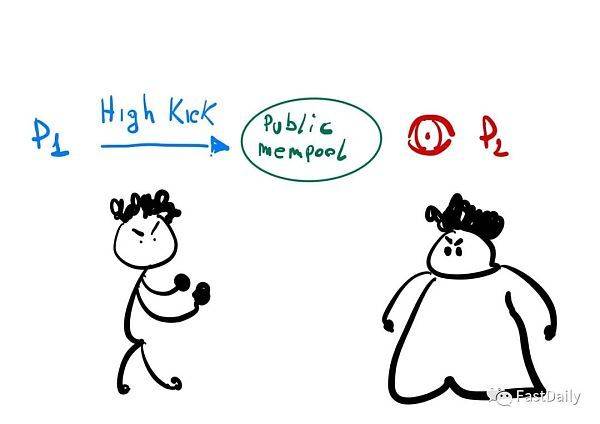 当玩家将交易发送到公共内存池时,如果交易以可读的形式提交,他们可能会将自己暴露为未跟踪。mempool的任何观察者都可以事先知道下一个动作流将是什么,并采取相应的行动。例如,在格斗游戏中,玩家 1 提交与内存池上的高踢操作相关的事务。同时,玩家 2 正在监视来自玩家 1 的任何事务的内存池。一旦交易完成,玩家2可以预测对手的下一步行动,并能够通过提交完美的反击动作来反击对手。