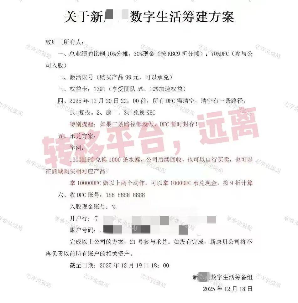 今天,我们整理最近高发且极具迷惑性的骗局清单。这些项目有的伪装成“国家工程”,有的打着“区块链”“健康养老”“绿色经济”旗号,更有甚者以亲情、友情为饵,将人拉入传销深渊。