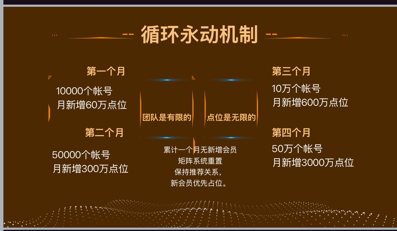 第一个点位作为团队公排33滑落,第二个点位则为全网公排33滑落(这个解决了静态不推广没收益的问题)